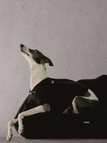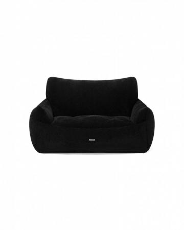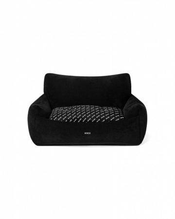 以柔软的灯芯绒面料打造,结合包覆式高背结构,为宠物提供稳定且舒适的休憩空间。可翻转坐垫采用双面设计——一面为灯芯绒材质,另一面为编织的 “TEAM WANG” 印花图案,适配四季场景。金属标牌与标志性大号金属气眼为整体增添品牌独有的设计语言。